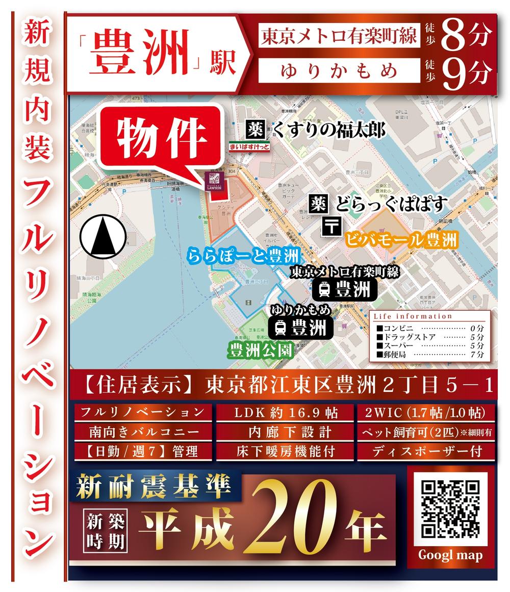 東京メトロ有楽町線「豊洲」歩8分 新交通ゆりかもめ「豊洲」歩9分 JR京葉線「越中島」歩18分 | ||||