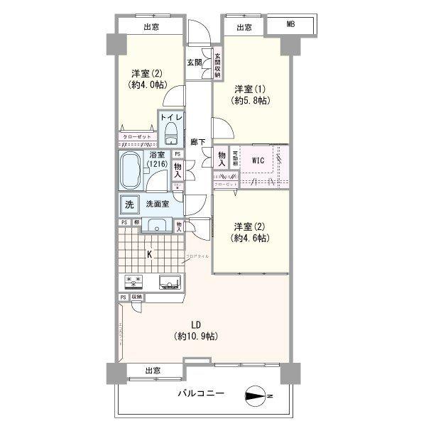 販売戸数/総戸数 | 1戸/274戸 | 主要採光面 | 東 | ||
