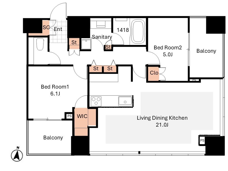 | 販売戸数/総戸数 | 1戸/155戸 | 主要採光面 | 南東 | ||