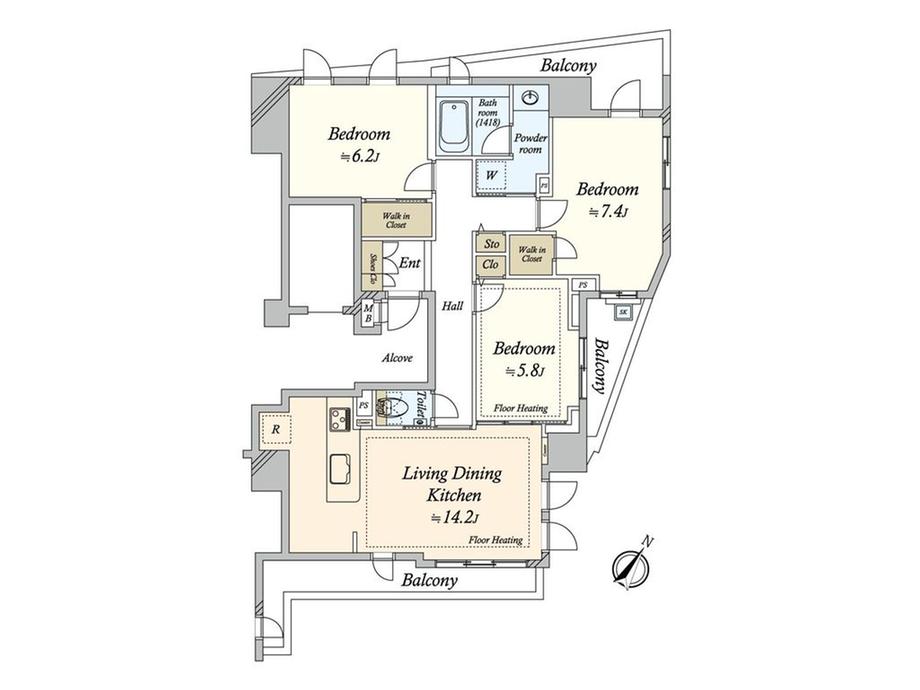 | 販売戸数/総戸数 | 1戸/60戸 | 主要採光面 | 南東 | ||
