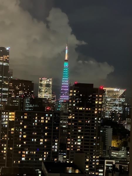 窓から広がる夜景は都市のダイナミックな雰囲気を感じられる風景です。ライトアップされたタワーが印象的に映えます。多様なビル群の灯りが夜の街並みを彩っています。遠くまで見渡せる眺望が日常に彩りを与えます。