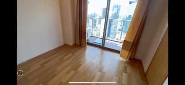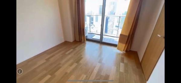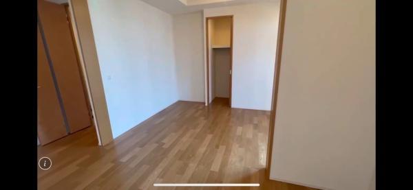 大きな窓があり空間全体に開放感があります。床は明るい木目調で落ち着いた雰囲気です。バルコニーに直接アクセスできる点も魅力です。収納スペースも備わっています。室内はすっきりとしたデザインです。
