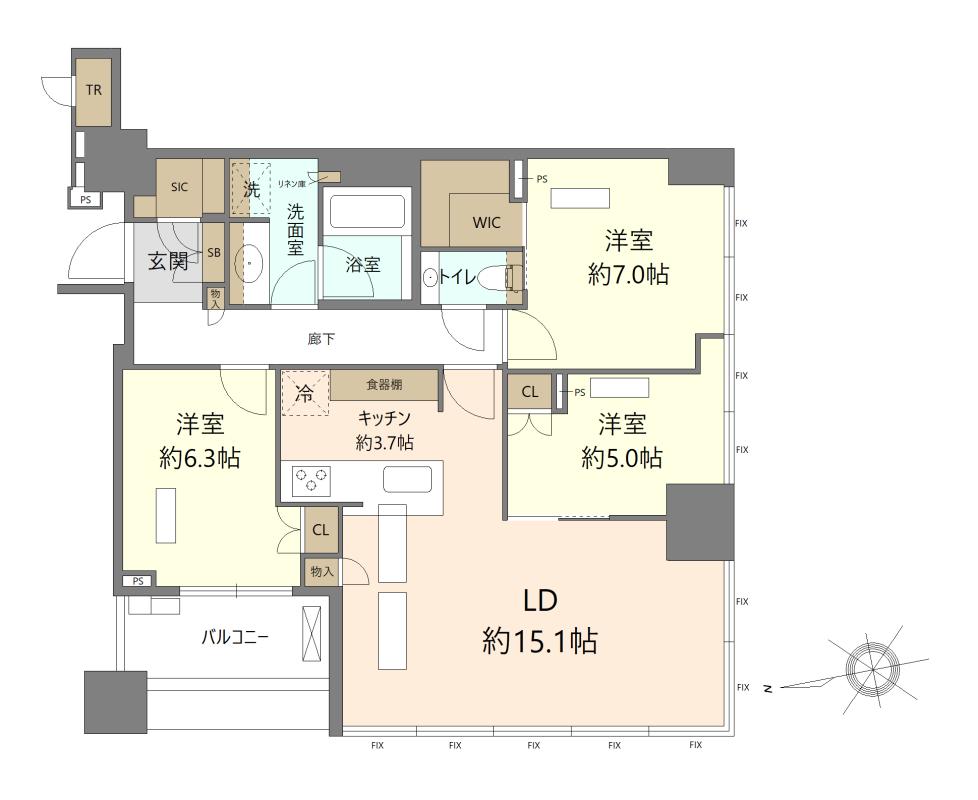 販売戸数/総戸数 | 1戸/1247戸 | 主要採光面 | 南 | ||