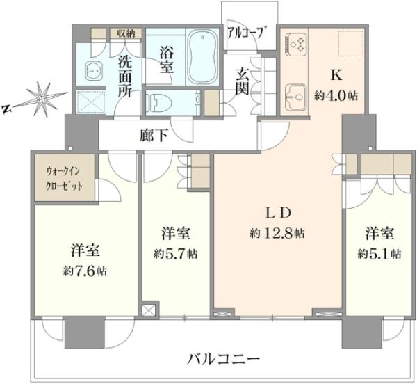 | 販売戸数/総戸数 | 1戸/421戸 | 主要採光面 | 西 | ||