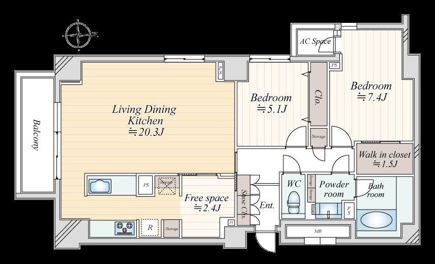 販売戸数/総戸数 | 1戸/56戸 | 主要採光面 | 南 | ||