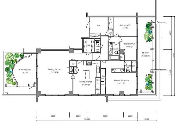 | その他面積 | バルコニー面積:30.6㎡、ルーフバルコニー:28㎡(使用料無) | 土地権利 | 所有権 | ||