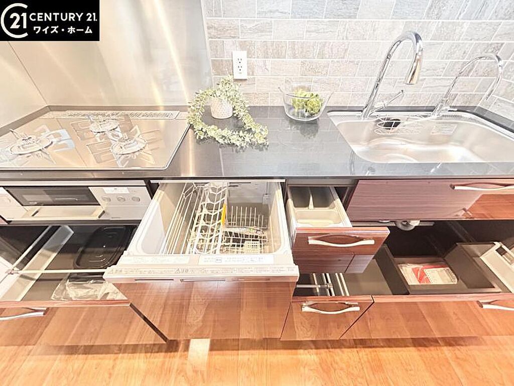 | キッチン | 浄水器・活水器、カウンターキッチン、コンロ三口以上、コンロ二口以上、ガスコンロ設置済、ガスコンロ、コンロ三口、システムキッチン、給湯、食器洗い乾燥機 | ||||
