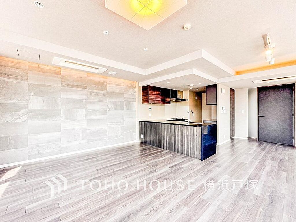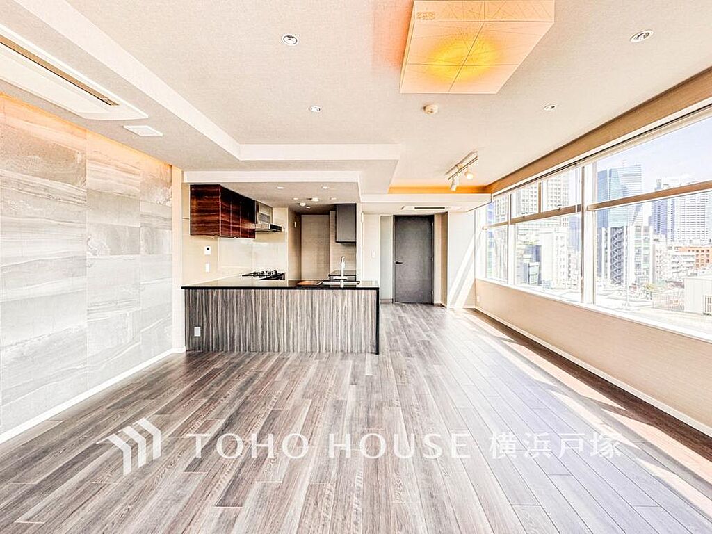 「Living room」明るく開放的な空間が広がるLDK。室内には豊かな陽光が注ぎ込み、爽やかな住空間を演出。ホームパーティーでもゲストと一緒に料理を楽しみながら楽しい時間を過ごせそう。