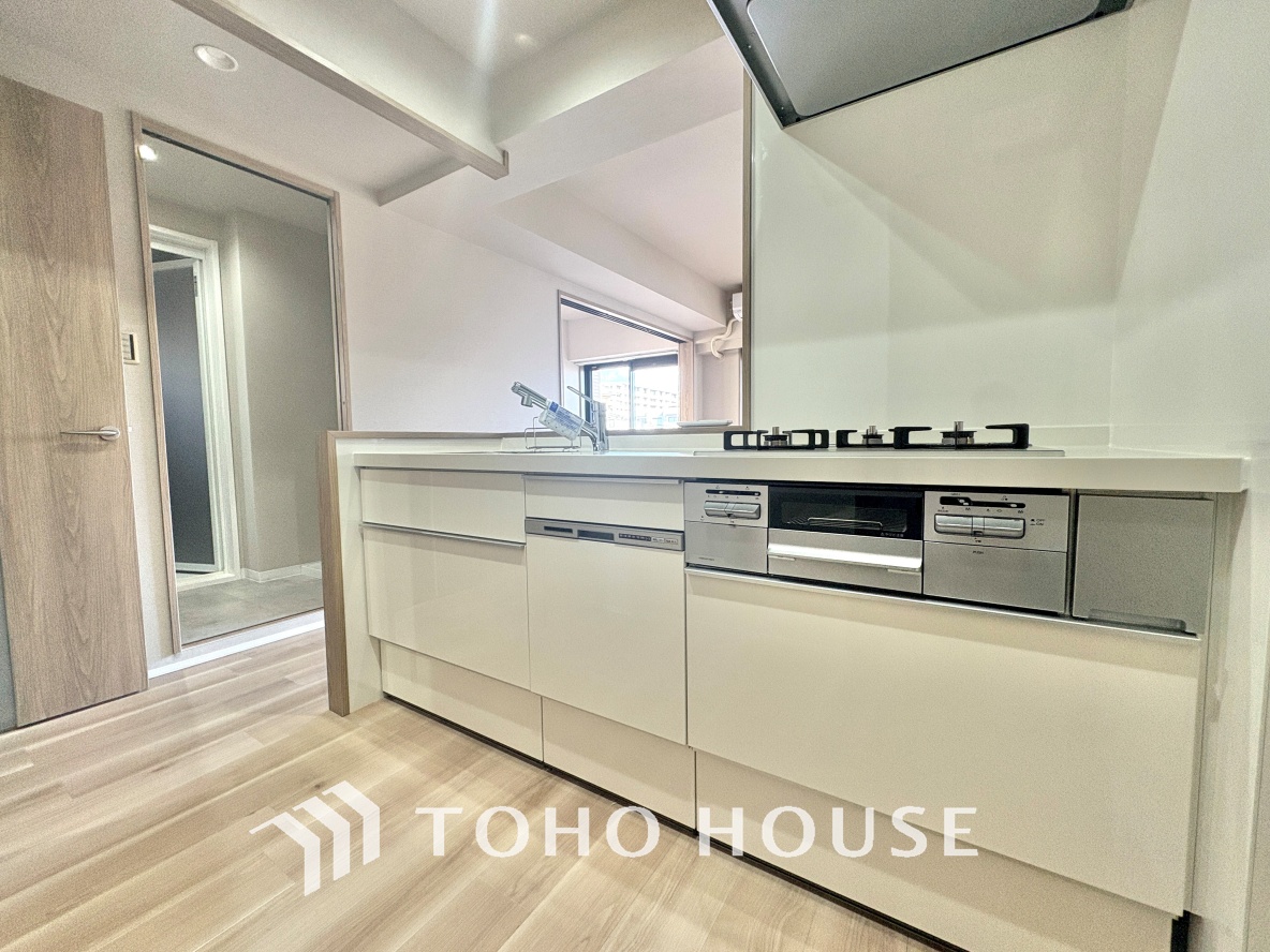 キッチンは家族の絆を育む大切な空間。シンプルで使い易いシステムキッチンで愉しく作る料理は愛情のある美味しいご馳走に。家族で使えるダイニングキッチンです。