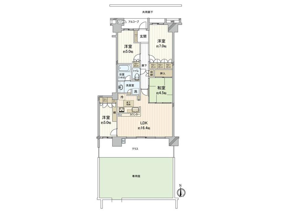 | その他面積 | 専用庭:36.45㎡(使用料700円/月)、テラス:16.2㎡ | 土地権利 | 所有権 | ||