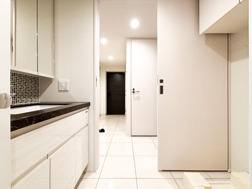 無駄をなくした、すっきりとした脱衣所。シンプルだからこそ、毎日の身支度がスムーズに。清潔感あふれる空間で、気持ちよく一日をスタートできます。