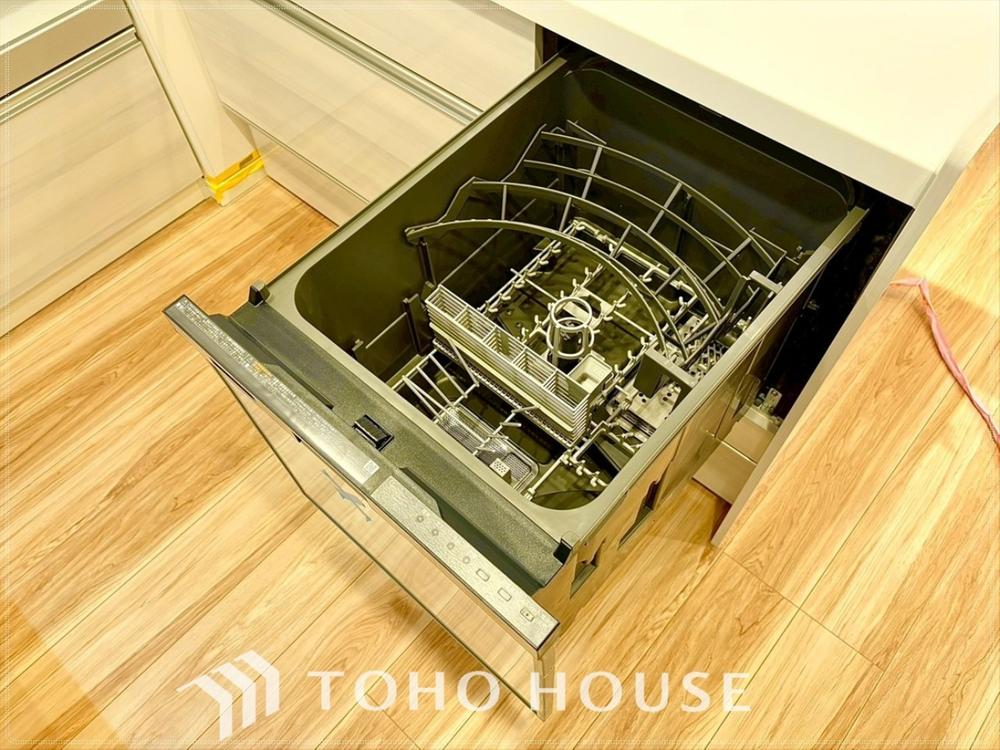 【ビルトインタイプ食器洗乾燥機】食器洗いの手間&時間が軽減できるアイテム。高温水や高圧水流を使うことにより効率よく食器洗浄できます。殺菌効果も高いので哺乳瓶などを使う家庭でも大変便利です。