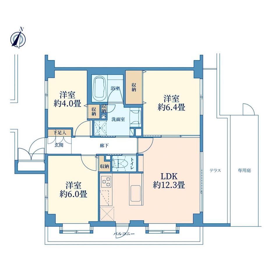 | その他面積 | バルコニー面積:15.41㎡、専用庭:11.94㎡、テラス:22.97㎡(使用料無) | 土地権利 | 所有権 | ||