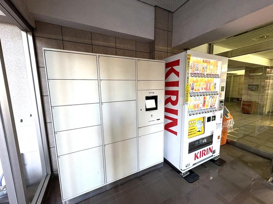 【エントランス】エントランスにはテーブルとチェアが設置されており、来訪者との待ち合わせなどに利用できます。エレベーター前にはベンチが設置され、落ち着いた雰囲気です。/2026年1月25日撮影