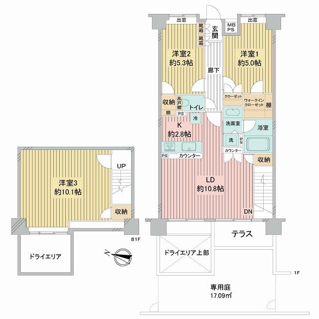 | その他面積 | 専用庭:17.09㎡(使用料300円/月) | 土地権利 | 所有権 | ||