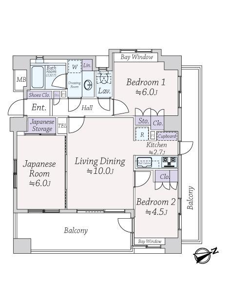 | 販売戸数/総戸数 | 1戸/42戸 | 主要採光面 | 東 | ||
