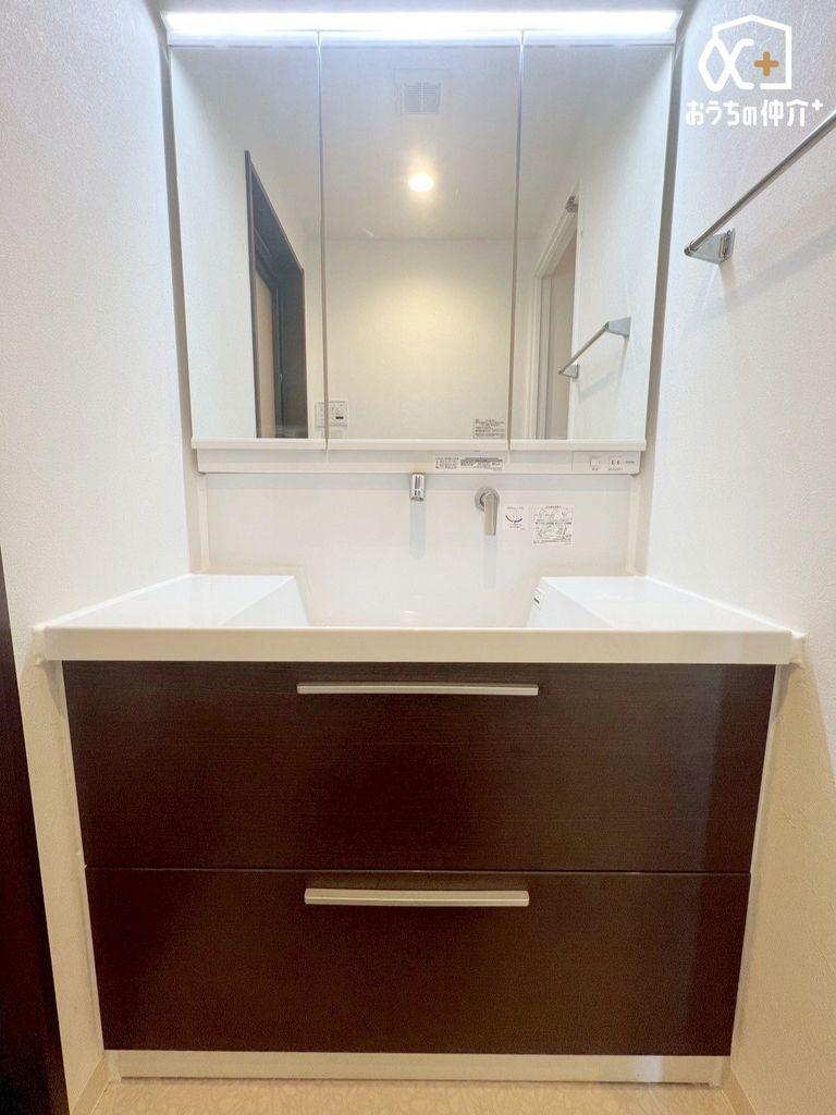 清潔感のある洗面所は、シンプルでありながら機能的なデザインが特徴。広めのスペースが確保されており、毎日の身支度やお手入れがスムーズに行えます。