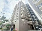 当マンションは鉄骨造、地下1階地上10階建て、タイル張りの外観です。