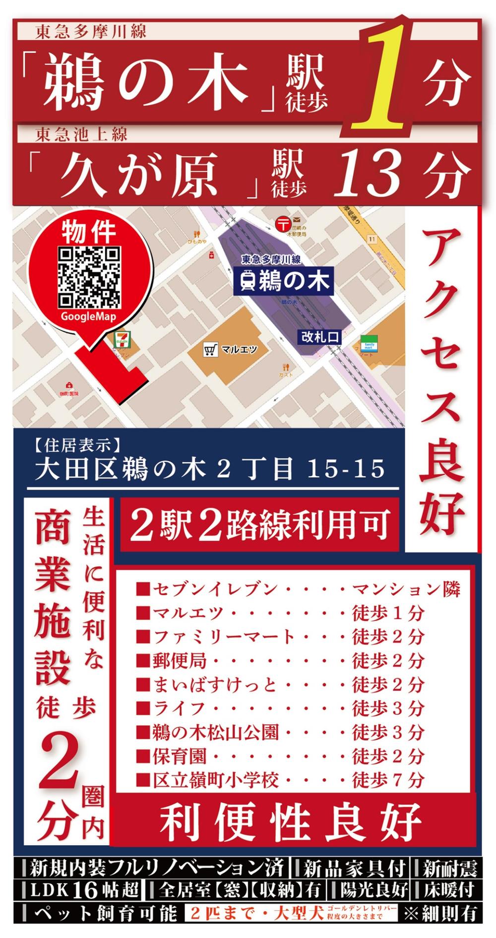 東急多摩川線「鵜の木」歩1分 東急多摩川線「下丸子」歩9分 東急池上線「久が原」歩13分 | ||||