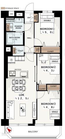 | 販売戸数/総戸数 | 1戸/44戸 | 主要採光面 | 南西 | ||