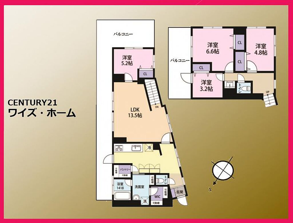 | 建物構造 | RC(鉄筋コンクリート) | 間取り詳細(帖) | リビングダイニングキッチン 13.5帖洋室 6.6帖洋室 5.2帖洋室 4.8帖洋室 3.2帖 | ||