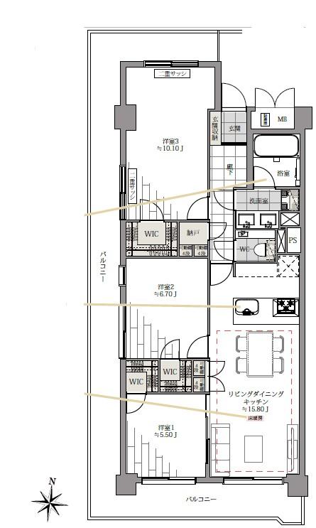 | 販売戸数/総戸数 | 1戸/111戸 | 主要採光面 | 南 | ||