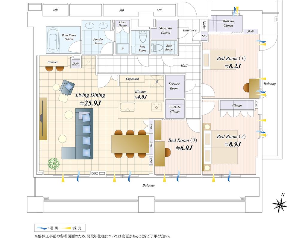 | 販売戸数/総戸数 | 1戸/196戸 | 主要採光面 | 南 | ||