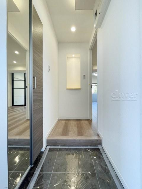 玄関ドアを背に、廊下と室内を望みます。ナチュラル系の色合いを重視した内装のイメージをご確認ください。お部屋の第一印象やイメージを決定づける空間です。~即日のご見学可能~ お問合せはお気軽にどうぞ。