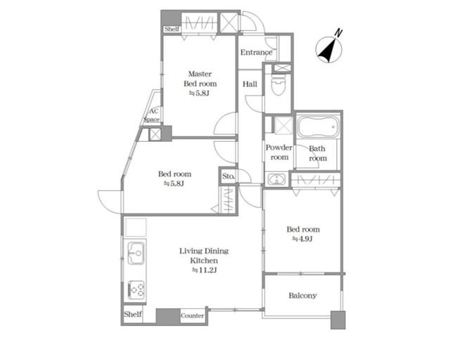 | 販売戸数/総戸数 | 1戸/33戸 | 主要採光面 | 南 | ||