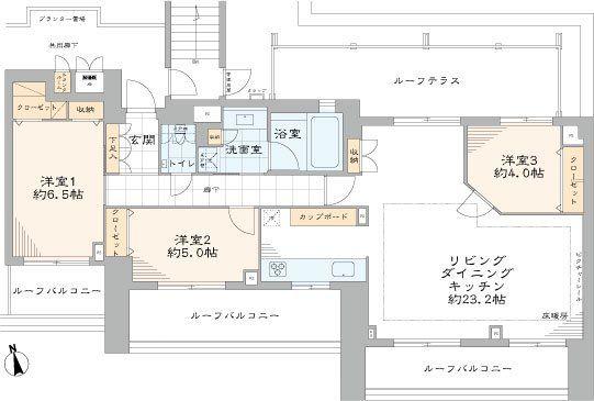 | その他面積 | ルーフバルコニー:26.41㎡(使用料1950円/月)、テラス:16.18㎡(使用料無) | 土地権利 | 所有権 | ||