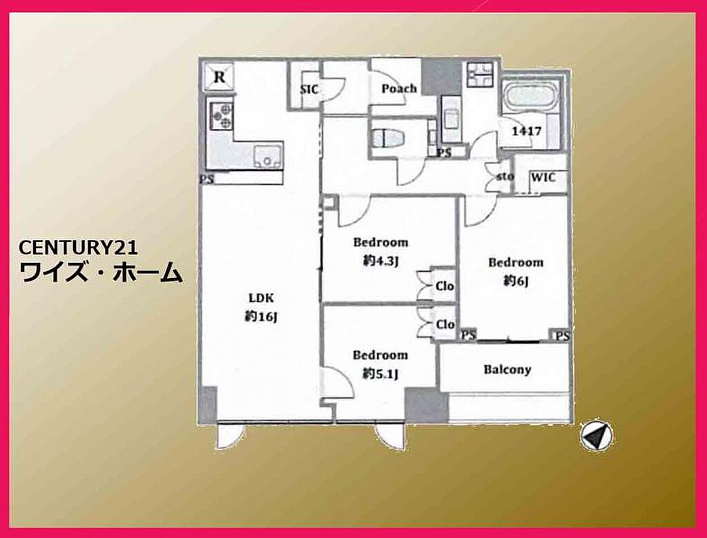 建物構造 | RC(鉄筋コンクリート) | 間取り詳細(帖) | リビングダイニングキッチン 16帖洋室 6帖洋室 5.1帖洋室 4.3帖 | ||