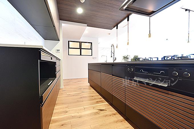 ナチュラルな雰囲気のシステムキッチン。浄水器や食器洗浄乾燥機、3口ガスコンロなど家事を快適&便利にしてくれる機能が搭載されています!☆即日内覧可能☆03-3789-7777