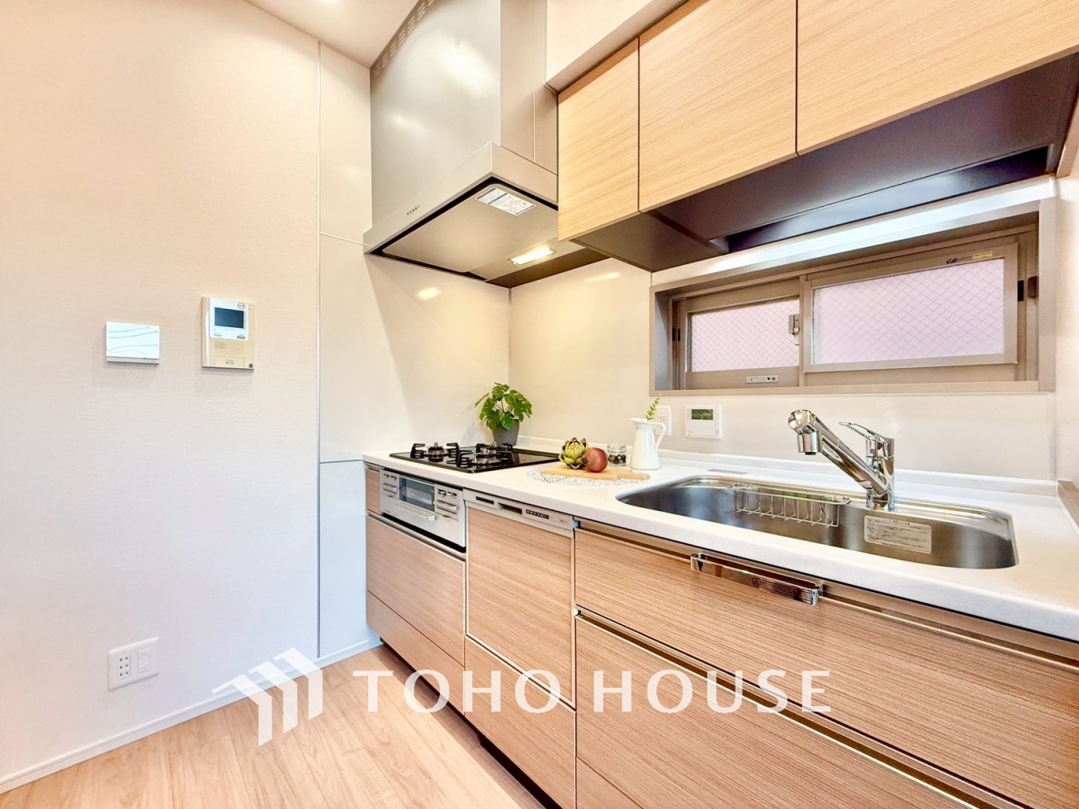 ◆キッチン◆美しく使いやすいキッチンは油汚れが簡単に拭き取れる素材で加工されており、浄水器シャワーから流す水の音を軽減する静かなシンクを採用。見えないところにさり気ない配慮が嬉しいですね