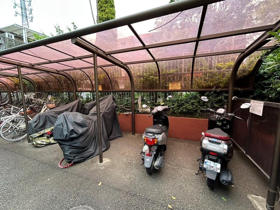 【駐輪場/共用部】公園へのサイクリングなどに嬉しい、駐輪場が備えられています。屋根付きのため、自転車の劣化を防げます。※最新の空き状況や使用料金など、詳細につきましてはお問い合わせくださいませ。