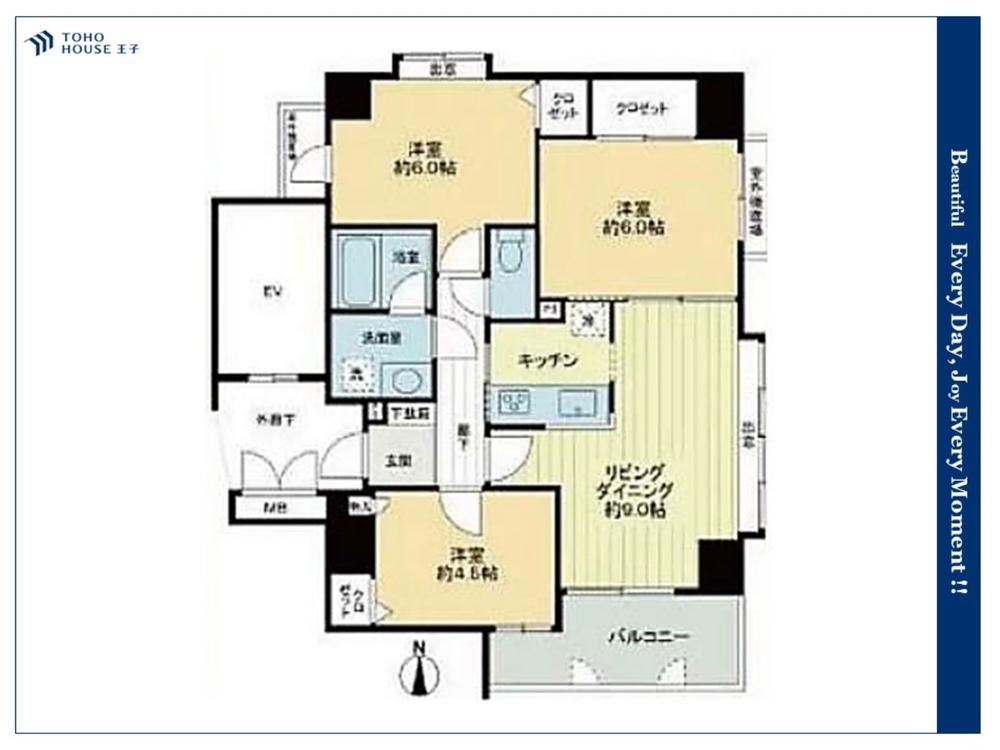 3LDK、価格9999万円、専有面積61.85㎡、バルコニー面積6.42㎡ 通風・採光にも優れ、心地よい光と風があふれています。 贅沢といえるほどの豊かな居住性と、プライドを満たすクオリティが見事に調和した住空間。