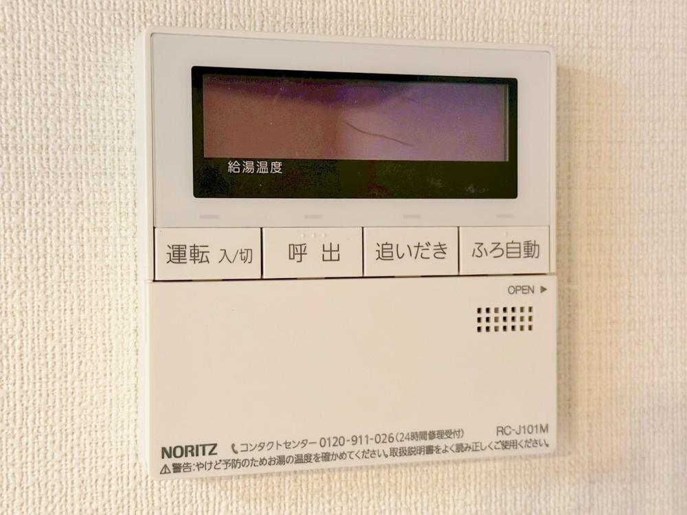 お風呂場と台所に操作リモコンがあり、キッチン近くにある給湯リモコンは、お料理の最中でもリビングで寛いでいるなかでもボタン一つで簡単に沸かせて便利ですね。