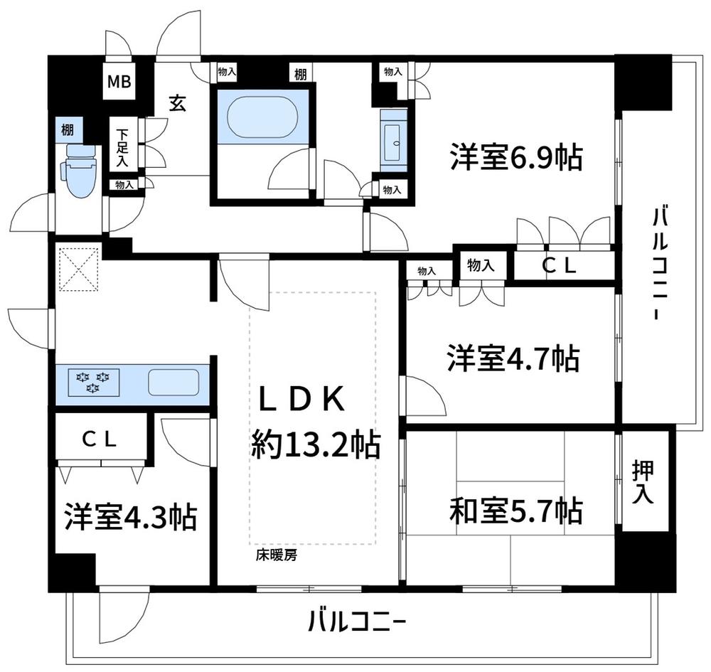 | 販売戸数/総戸数 | 1戸/96戸 | 主要採光面 | 南東 | ||