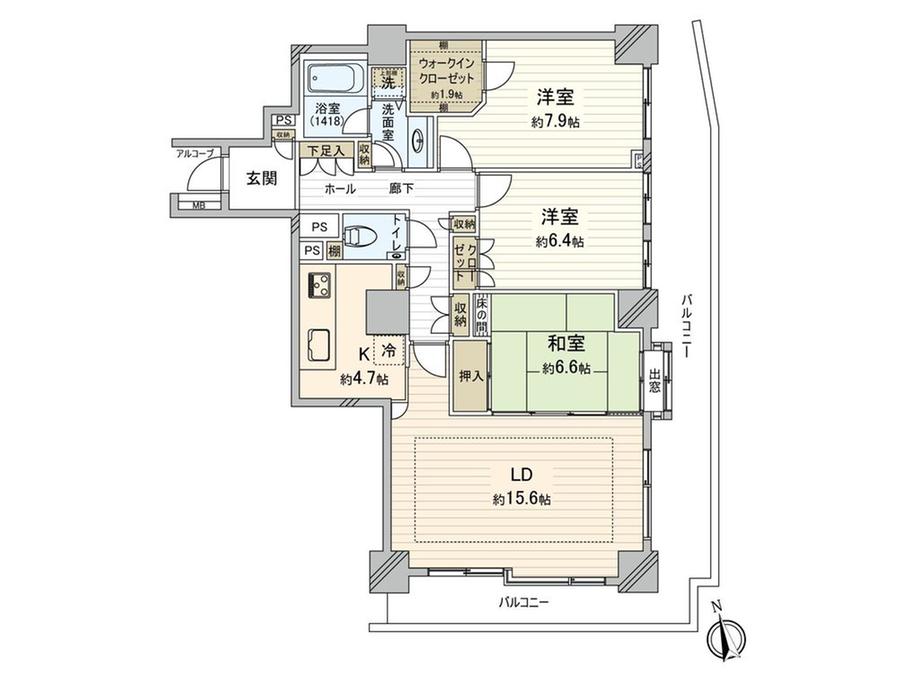 販売戸数/総戸数 | 1戸/124戸 | 主要採光面 | 南 | ||