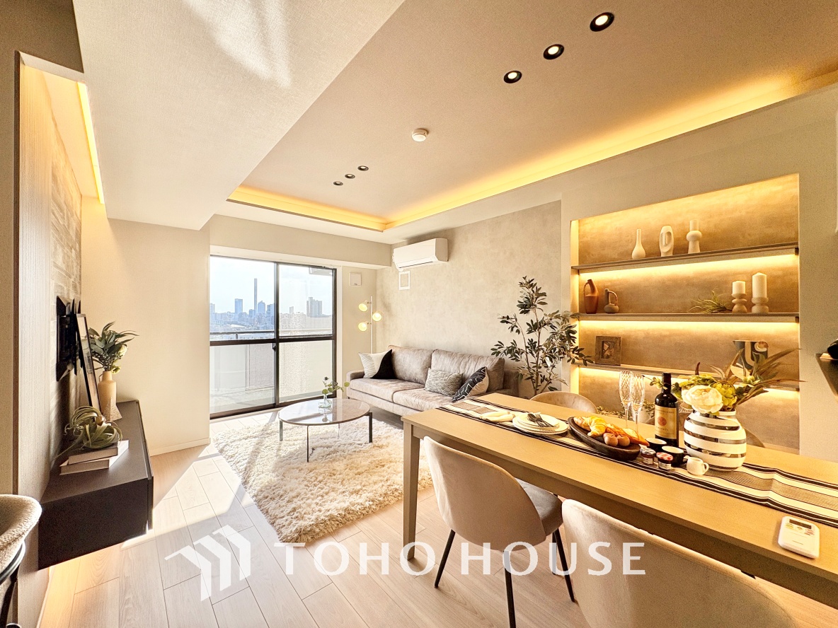 月々のローン返済額を試算13階角部屋の「空飛ぶリビング」をスマホで体験! フルリノベの質感から1階スーパーの近さまで、スタッフが身体を張って(?)実況します。87平米の広さを画面越しに体感してください!