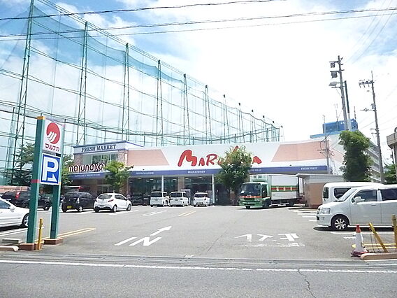 道路を挟んで目の前にマルナカがあります。大きすぎず、普段使いにちょうどいい店舗で、22:00まで開いており便利です。イオン銀行、愛媛銀行のキャッシュコーナーもあります。