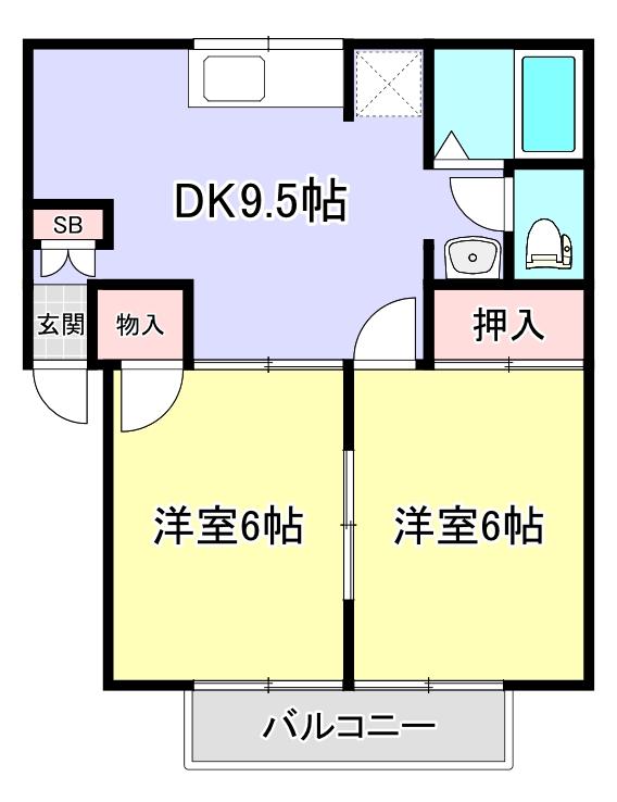 | 2階 | 2DK 42.9㎡ | 3.8万円 不要 | - 敷