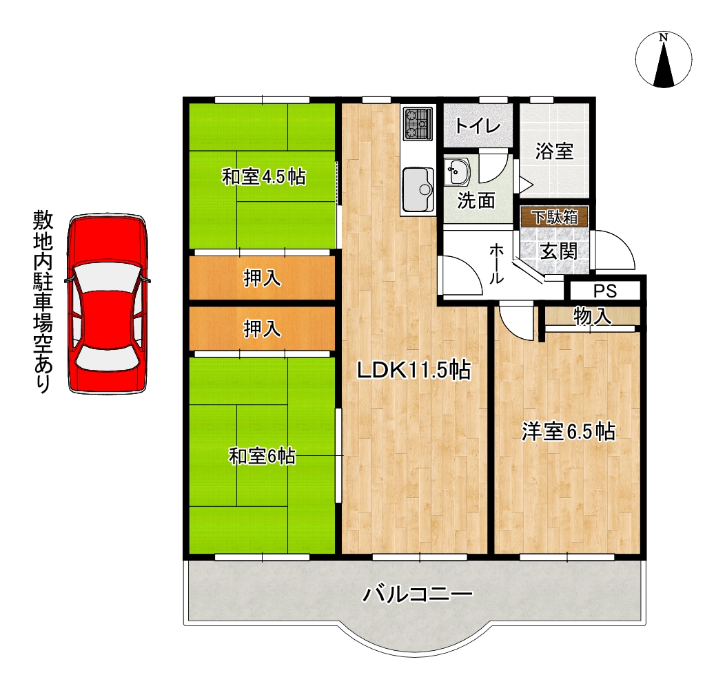 | 2階 | 3LDK 65.43㎡ | 6万円 不要 | - 敷