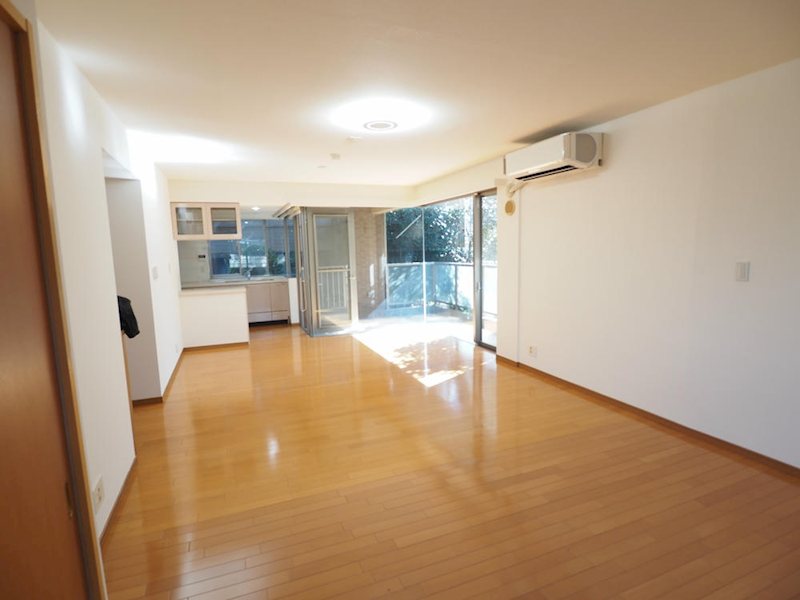 リビングとベランドを隔てる壁がガラス張りのため、開放感がある