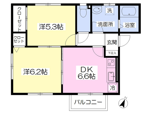 | 2階 | 2DK 42.55㎡ | 5.7万円 4,000円 | - 敷