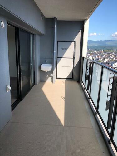 非常に日当たりが良く快適。西日も当たらない。 ベランダが広く、洗い場もあるのは助かる。