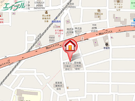 JR岡山駅・天満屋から日赤病院方面 「岡南小学校前」停留所で下車 徒歩 約3分