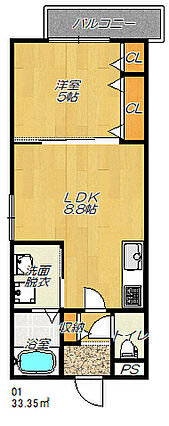 | 1階 | 1LDK 33.35㎡ | 6.3万円 4,000円 | - 敷