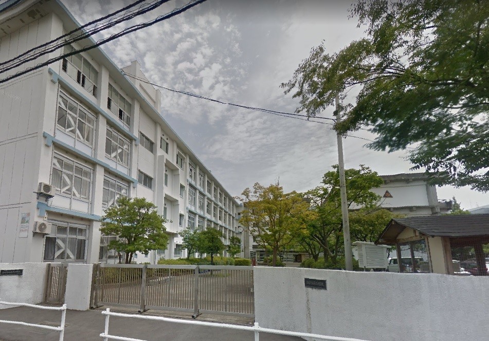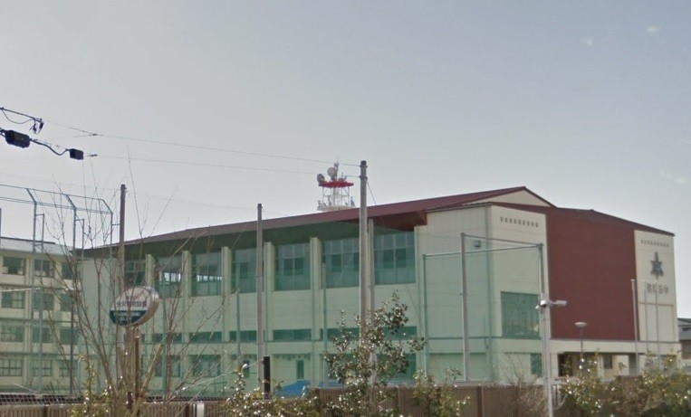 隣が中学校。道を挟んで学校が並んである。
