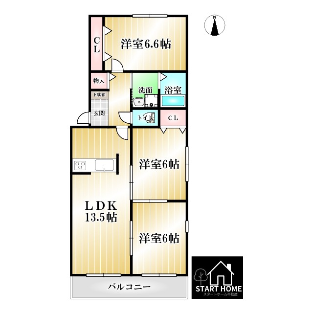 | 2階 | 3LDK 69.16㎡ | 7.5万円 不要 | - 敷