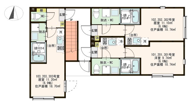 | 1階 | 1K 18.74㎡ | 6.15万円 4,000円 | - 敷